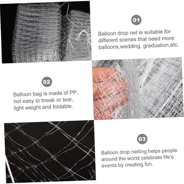 Нашата мрежа за балон може да се користи за сите видови активности за ослободување балон. За роденденски забави за изненадување и новогодишни забави, можете да го искористите овабалон мрежада ги изненадите вашите гости. Направете незаборавни спомени од вашите активности со оваа сигурна мрежа за ослободување балон.