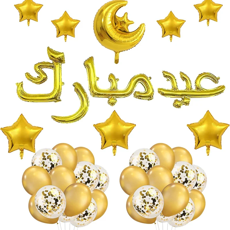 На овој фестивал полн со ритуална смисла, декорацијата во животната средина честопати станува клуч за создавање на атмосферата - балон поставен со балон со фолија на Еид Мубарак со својата жива природа, да стане завршен допир на многу домови и места за настани.
