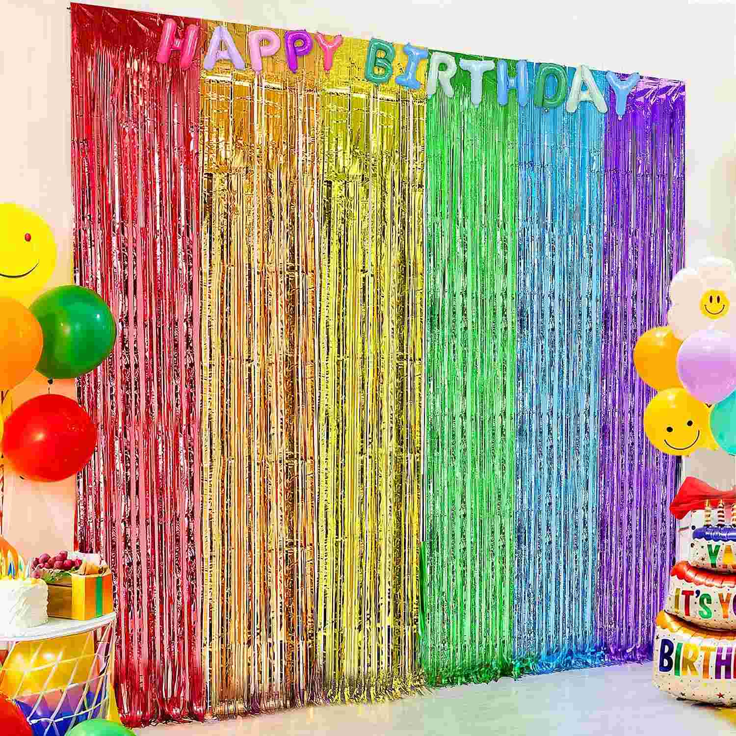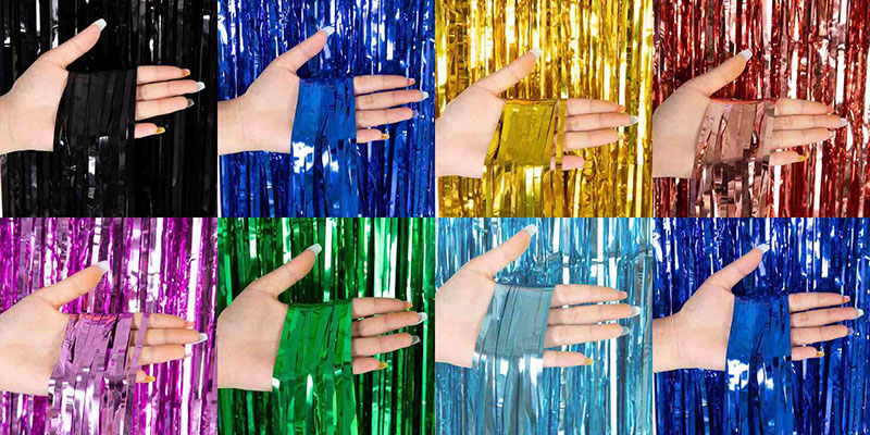 Декорациите за заднина за завеси со фолија за роденденска забава се направени со ткаење метални жици со висока густина. Тие навистина добро висат со силна завеса. Нежно тресете им, и тие течат како водопад. Изгледа толку убаво. Има многу различни бои за избор. Можете да изберете шампањско злато, розово злато, сребро и многу повеќе. Ако сакате, можете да добиете и стилови на блокови во боја. Тоа одговара на потребите за усогласување на боите на различни сцени.