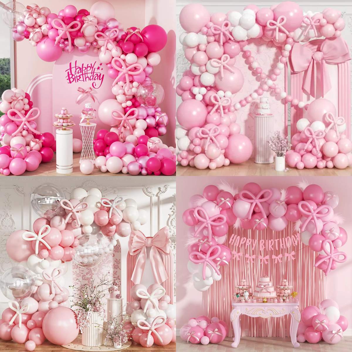 Комплетот на елегантен розов лак балон совршено одговара на сите барања на девојчињата за слатки теми. Комплетот за роденденска забава на лак е многу добар избор за забави за добредојде за бебиња, свадби, ергени забави, итн. Оваа прекрасна розова балон венец е свежа и убава. Ако сакате да одржите забава, тоа е дефинитивно вашиот совршен избор. Лаковите на балонските венци можат да ги направите сами, овозможувајќи ви да ја доживеете забавата на DIY! Ако мислите дека на вашата соба му требаат повеќе украси за лак, можете да ги додадете и во вашата соба.
