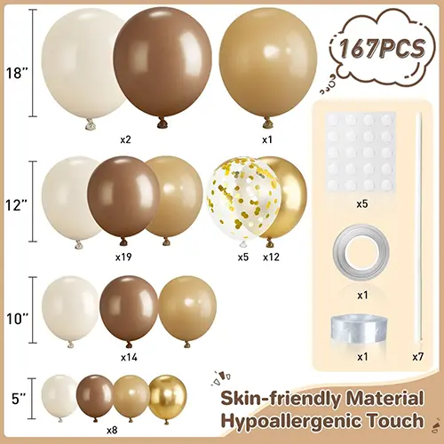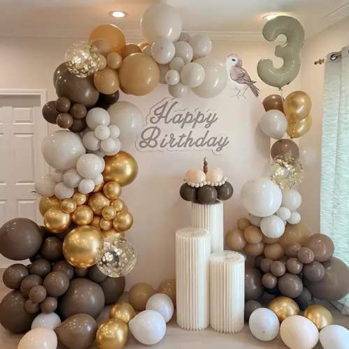 Да не изберете нас значи да изберете не само доверлива фабрика за балони, туку и стратешки партнер посветен да расте заедно со трговците на големо. Нашиот комплет Camel Color Balloon Arch Kit, со својот стабилен квалитет, систематски состав и широки можности за примена, стана профитабилен производ со повторна нарачка за бројни трговци на големо ширум светот.