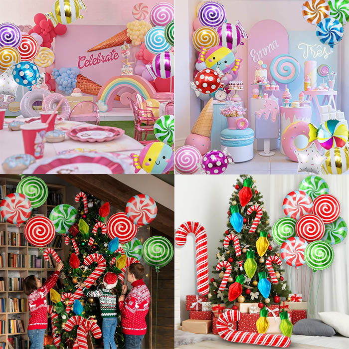 Балони со фолија од серии на бонбони во моментов се достапни во најразлични бои и стилови, создавајќи нова декорација со тематски бонбони за возрасни, деца, момчиња, девојчиња и луѓе од сите возрасти. Светли и разнобојни божиќни бонбони тематски балони, симпатична тематска забава со балони со балон за забава е симпатичен додаток на вашата украсна забава со теми за роденден. Балон со бонбони со фолија совршено се совпаѓа со други украси за забави со бонбони, правејќи убав подарок, позадина и реквизити за фотографии за пријатели кои сакаат лижави.