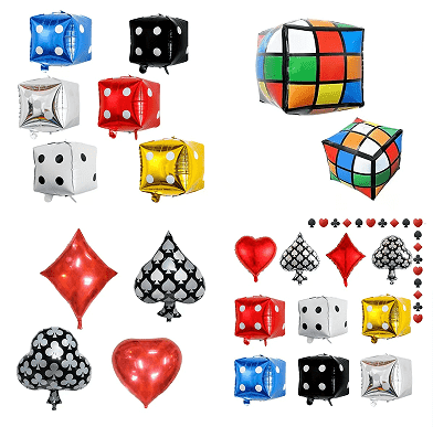 Комплетот за венец за балон за казино главно вклучува балони од латекс, тие доаѓаат во различни големини (5 инчи, 10 инчи, 12 инчи и 18 инчи). Во нивните бои обично доминира црвена, црна, златна, итн. За да се подобри ефектот на слоевитоста на комплетот, можете да видите и проѕирни балони од латекс и балони од конфети од латекс.