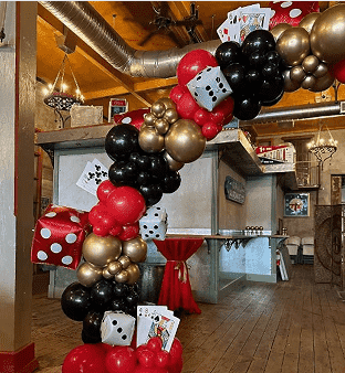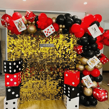 Главно во класичната црвена, црна и златна шема на бои, која е најиконската комбинација на бои во казината сцена и стилот со најголем обем на купување. Со чисто светло црвено и мат длабоко црно како основа, и со метални златни балони од латекс како украси во слоеви, ја враќа луксузната и мистериозната основна атмосфера на казиното, задоволувајќи ги потребите за декорација на огромното мнозинство клиенти и има исклучително силна разновидност.