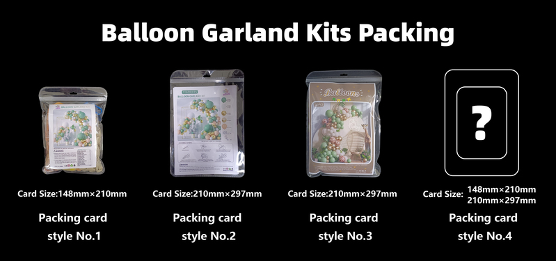 За пакувањето на комплетите со лачни балон, тоа зависи од вашата продажна пригода. Ако го продадете преку Интернет, долунаведениот стил на пакување бр.1 и вакуумот ќе биде добар за вас, може да ви помогне да го заштедите просторот за испорака и трошоците за испорака. Но, ако ги продавате приспособените комплети за шарени балонски сводови во продавница, поголемата кеса за пакување во стилот на пакување под број 2 или поголема големина ќе биде соодветна за вас, поголемата торба за пакување со картички со разнобојни комплети за лак за балон може да ги прикаже производите на подобар начин да ги прикажете вашите клиенти. Но, ако сакате прилагоден стил на пакување на свој начин, тоа е исто така во ред, можете да ни ги кажете вашите барања, нашиот дизајнер ќе го направи тоа за вас. Или вие го правите дизајнот и ни го испраќате конечниот дизајн, нашите работници ќе ги направат висококвалитетните украсни комплети за лак со балони врз основа на вашите барања.