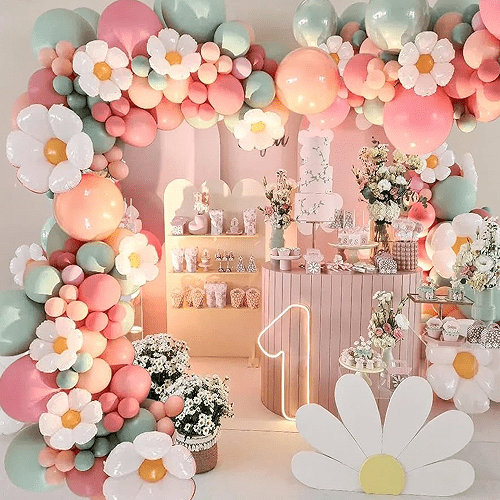 Со широк асортиман на употреба, венецот со балон со маргаритка не е погоден само за декорација на првиот роденден на девојчиња и женски родендени, туку и за боемска декорација за крштевка со маргаритка, две модерни украси за забави, свадби, туш за невести итн. Погоден за внатрешен и надворешен простор.