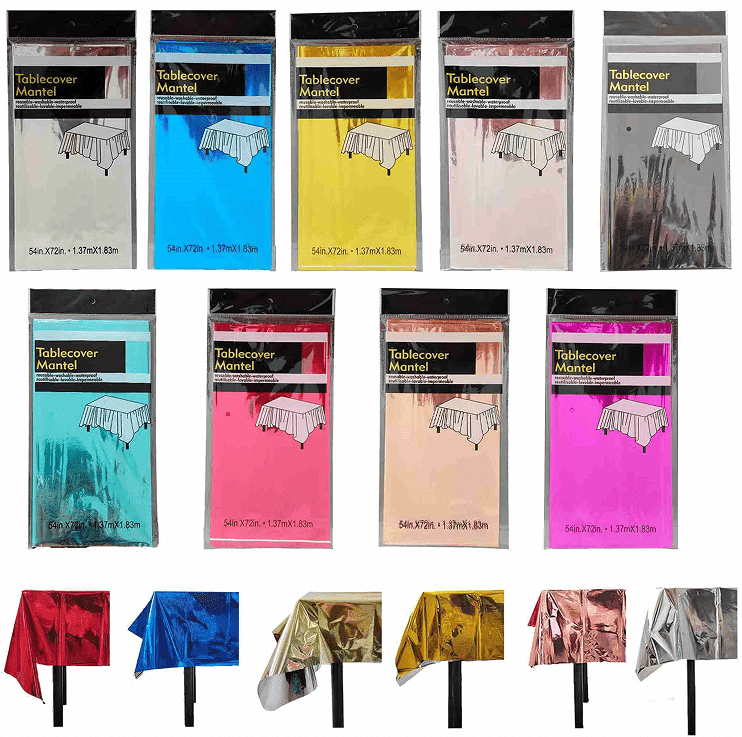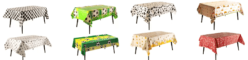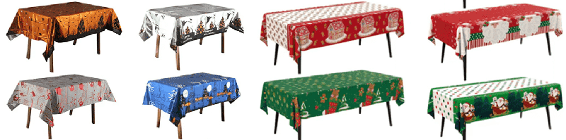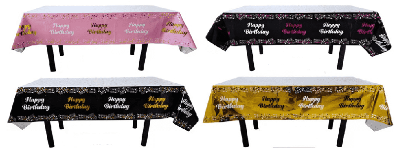 боја на виножито, фолија чаршав со цртани животни и шари на торти, погодни за детски родендени; златна, сребрена, ласерска боја со ѕвезди и шари на букви, погодни за роденденски забави за возрасни, прослави на годишнини, забави за девојки итн., може да се организираат во семејни трпезариски маси, маси за забава во хотел, маси за пикник на отворено и други сцени.
