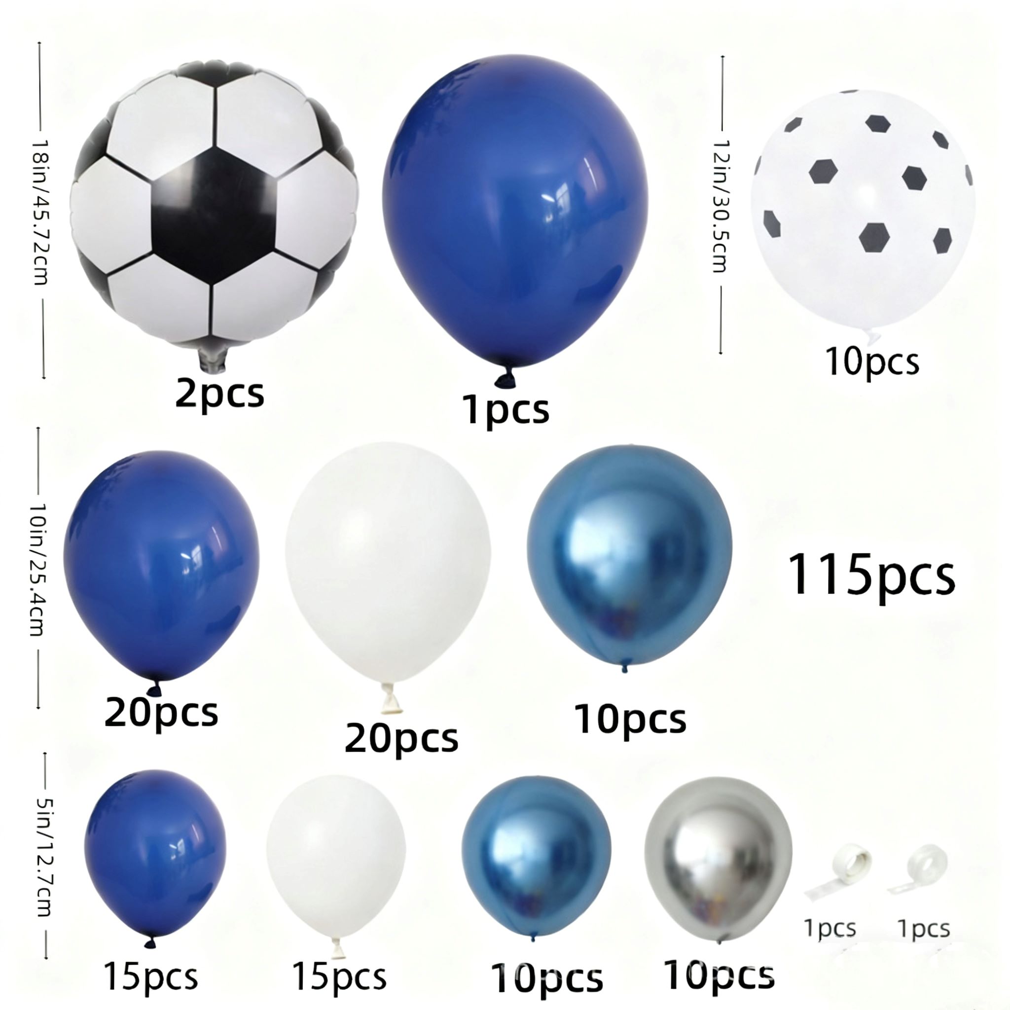 Вкупно 115 парчиња комплети за лачни балон со фудбалска тема.