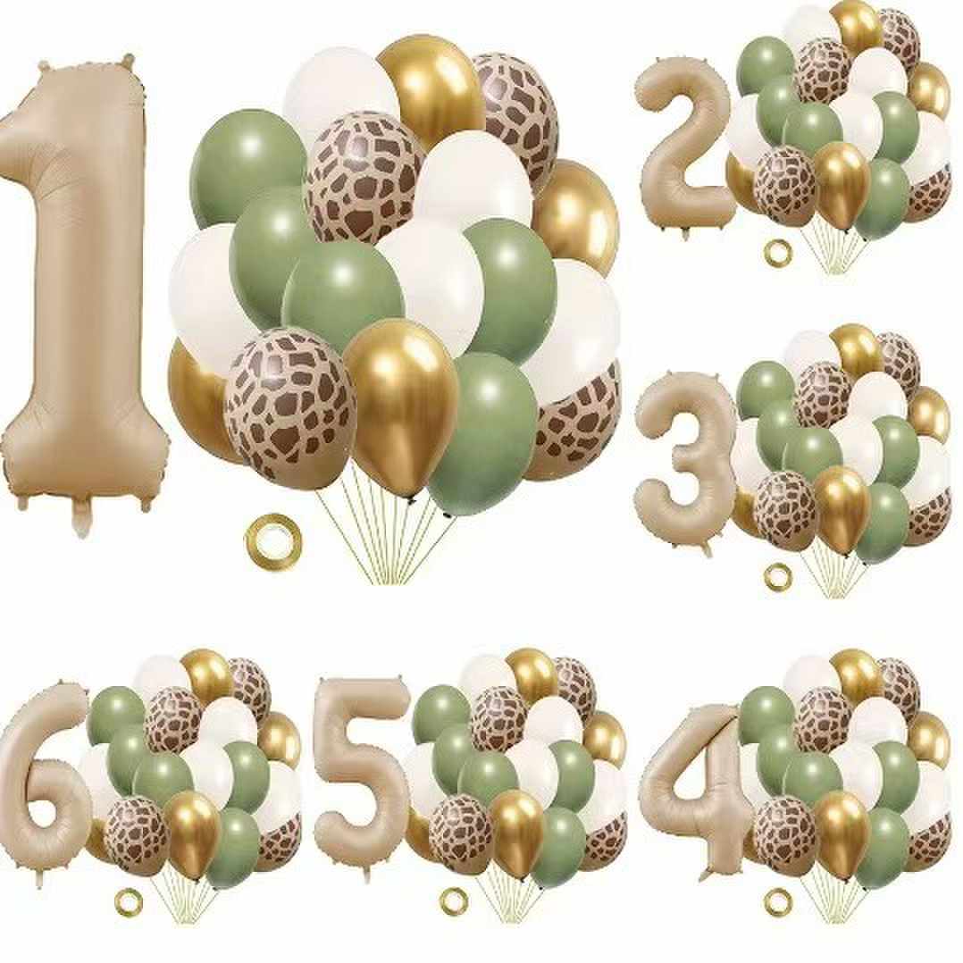 За да ги задоволиме потребите за декорација на различни сцени, нудиме различни дизајни за комбинации. Комплетите за балони со латекс генерално содржат 10-50 монохроматски печатени балони. Боите се главно шумски теми портокалови, зелени, кафеави и други бои. Тие се погодни за детски забави и украси со шумски теми. Пакувањето е запечатено со торби за опции и прилагодени картички за хартија, кои се убави и практични.