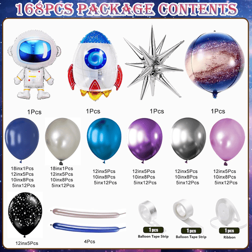 Венец за балон со тема Галакси е многу флексибилен комплет. Освен фиксната содржина, можеме да го додадеме и балонот или да ја смениме торбата на пакетот за вас според вашите посебни потреби.