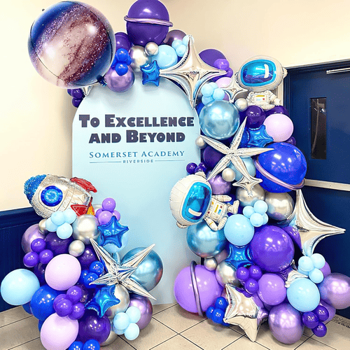 Да, за приспособување на венец со балон со тема галаксија, нашиот дизајнерски тим ќе ви помогне со тоа. И вашиот менаџер за продажба ќе ви ја понуди услугата едношалтерски.