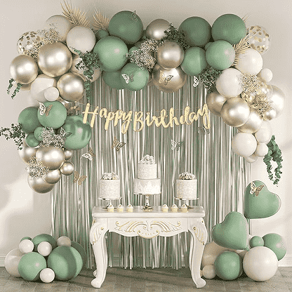 Основниот стил е балон од латекс Среќен роденден во иста или дополнителна боја, соСреќен роденден писмо балони од фолијаилибројни балони од фолија. Класичните стилови имаат балон со макарон во прав гел розев Среќен роденден фолија балон, црн латекс балон балон со златен број фолија. Балоните од латекс може да се нанижат во синџир од балон и да се закачат на ѕидот или таванот, со балони од фолија како визуелен центар и мала количина на украси со панделки за брзо создавање на едноставна и текстурана атмосфера за забава.