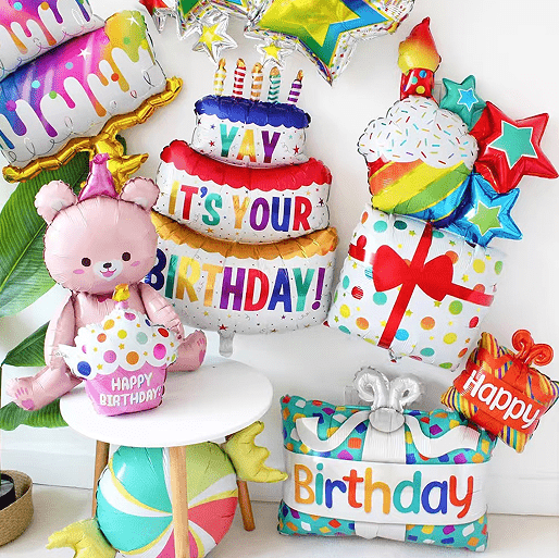 Среќен роденден фолија балон има посилно визуелно влијание и чувство на високо ниво, производот е направен од високо-сјајна алуминиумска фолија материјал, површината претставува метална текстура, добар рефлективен ефект, сјае под светлината, може да стане фокус на забавата. Класичните модели се целосниот сет на балон со букви „Среќен роденден“ и балони со броеви „Среќен роденден“ како „18“, „30“ и „60“. Моделите за моделирање вклучуваат колачи, љубов, ѕвезди, цртани ликови, животни итн., кои се погодни за различни тематски потреби на децата и возрасните.