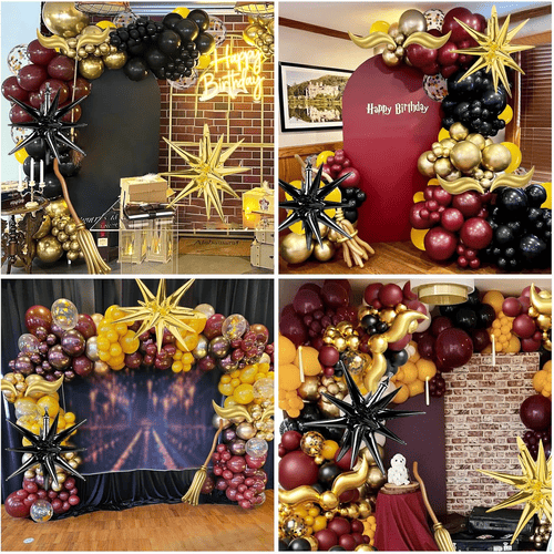 Балонот од латекс во балон лак на тема Хари Потер е направен од 100% суров латекс кој е увезен од Југоисточна Азија. Бидејќи се природен материјал, тие се целосно еколошки и безопасни за деца и возрасни. Нивните бои се симболични бои на филмовите за Хари Потер, вклучувајќи црвено вино, жолта, црна и златна. За да додадеме повеќе слоеви, го додадовме и балонот за конфети, конфетите се металик златни.
