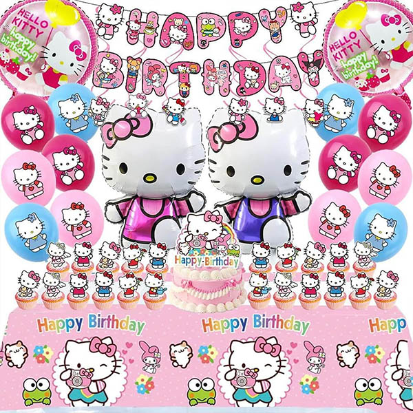 Овој сет за балони со латекс со латекс на Hello Kitty се состои од среќен роденденски банер, декорација на врвот на торта, здраво писе тематски латекс балон и врвна декорација на cupcake. Сите украси во овој пакет се изработени од висококвалитетни материјали, со светли бои и прекрасни обрасци. Материјалот е густ и не е лесен за оштетување, што може да обезбеди дека украсите во пакетот остануваат во добра состојба за време на прославата на настанот. Без разлика дали станува збор за прослава, роденденска забава или забавна забава, овој сет за забава со теми за цртани филмови е идеален.