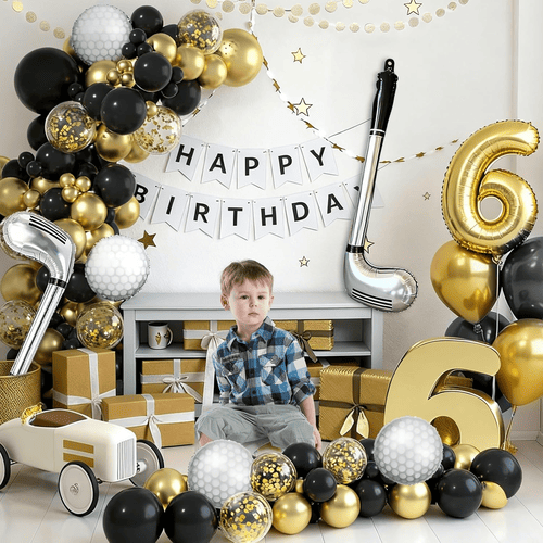 Освен за балоните, можете да додадете и некои додатоци за да го додадете стилот, како што е заднината со темата за голф или други тематски украси. Можете исто така да ги користите балоните во комплетот за да создадете други ефекти. Како дупка во еден комплет балони од фолија или дупка во еден комплет балони од латекс. Сите тие можат да направат совршен ефект на вашите забави.