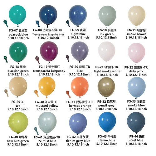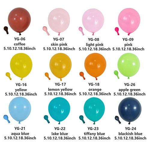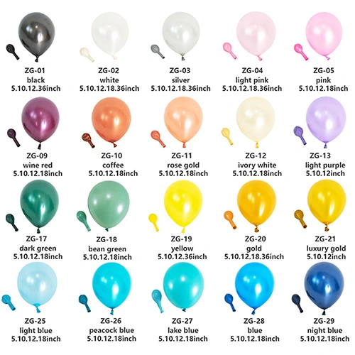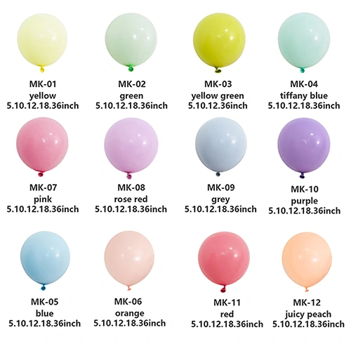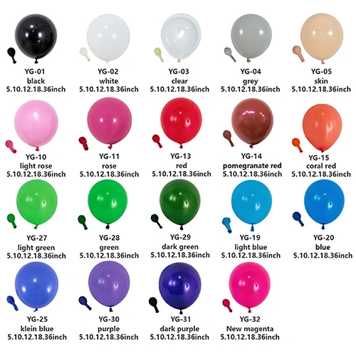 Балоните од латекс се широко користени украсни и забавни предмети. Овие балони се многу популарни во различни прилики поради нивните различни бои и методи на употреба. Од мат црвена, жолта, сина и зелена до ретро розова и виолетова, а потоа до металик тонови како златна и роза, висококвалитетните балони можат да создадат изненадувачки визуелни ефекти и да ги задоволат потребите на различни сценарија.