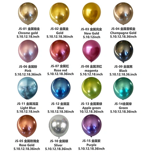 Метални балони:Со сјаен финиш на огледалото и привлечни текстури и бои, ова се најразновидните балони од латекс за употреба во украси за забави, прилагодено печатење и многу повеќе.