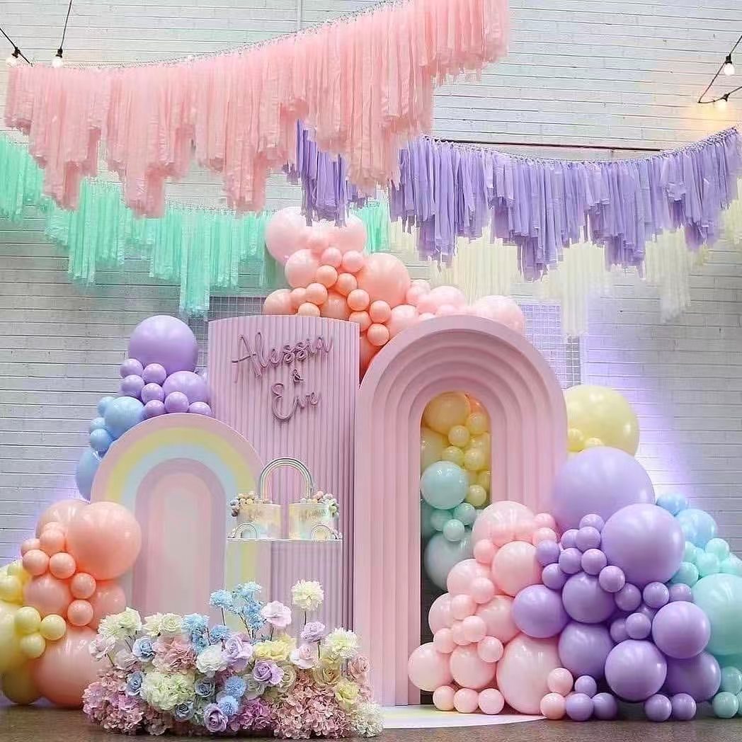 Балони во боја на макарун Гарланд Арх е популарен по своите меки и сонувачки бои. Целиот сет се фокусира на 12 нежни бои на макарунот. Има макарун црвена, макарунска сина боја, макарун виолетова и други бои. Секоја боја носи свеж и романтичен изглед.