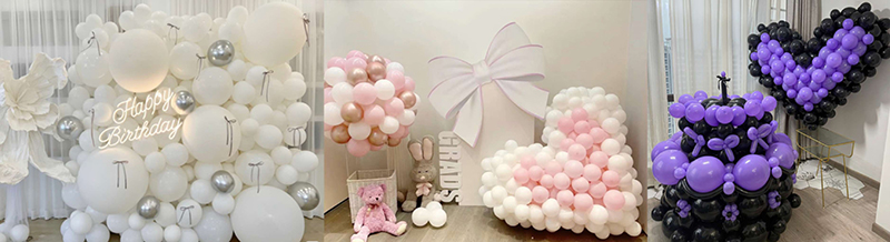 Различни големини можат да се користат заедно. Малите балони можат да се користат како детали за декорација. Големите балони можат да се користат за лак за балон или балон. Ефектот изгледа впечатлив. Кога се користи со балони Bobo, метални балони во боја или балони со фолија, изгледот има повеќе слоеви. Стилот станува побогат. Употребата е многу широка. Може да се користи на свадби. Може да се користи на роденденски забави. Може да се користи и на празнични настани. Работи како главна декорација или детална декорација.