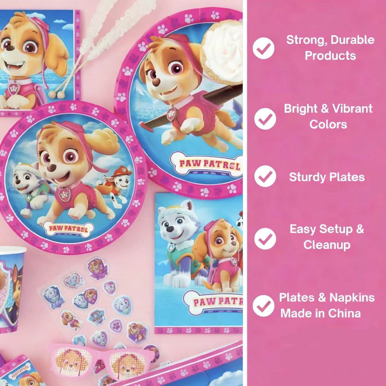 Балоните од тркалезна фолија за забава на Paw Patrol имаат светли привлечни бои, и секако слики од главните ликови. Овие балони би можеле да се спојат со балони од фолија во форма на тема, како ѕвезди и коски, исто така направени од 3D фолија како поразиграна комбинација. Можете да ги слоевите на различни висини и да заминете со анимирана декорација. Овие готови производи нема да паднат и ќе бидат „горе“ подолго од обичните балони.