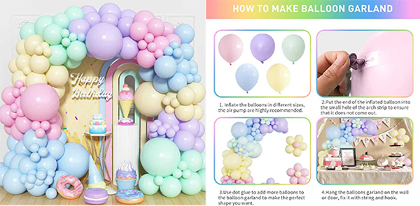 Нашиот комплет Rainbow Balloon Garland е совршен за секоја забава, без разлика дали се работи за роденден, туш за бебиња, забава со виножито или забава на тема еднорог. Закачете ги овие пастелни балони со виножито од серија блокови со виножито или боја или комбинирајте ги за да создадете шарена венец од виножито.