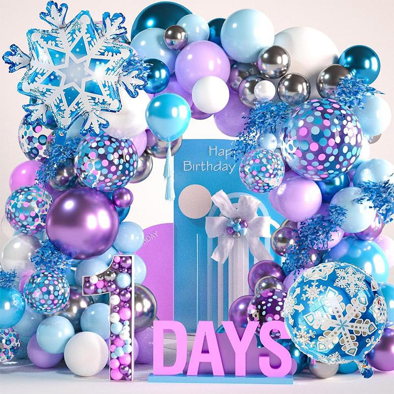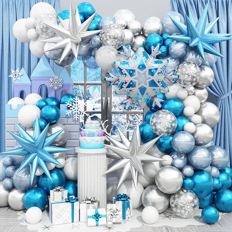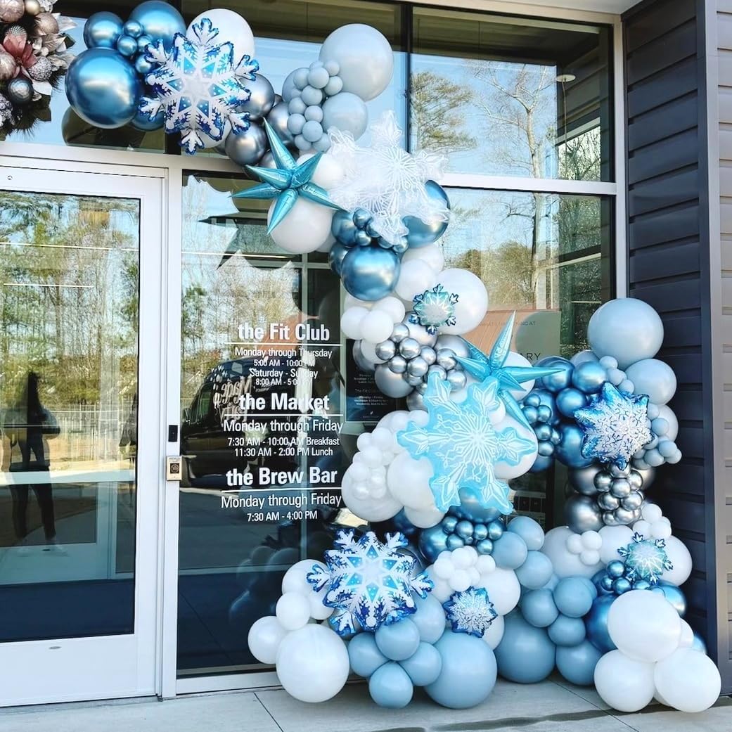 Ако барате да создадете атрактивна декоративна истакнување за вашата забава, пробајте го нашиот балон со снегулка со балон со балонски гарландски комплет. Оваа чиста декорација на синиот балон лак е многу погодна за замрзната тематска роденденска забава, тематска забава на Ајша, забава за мраз и снег, забава за зимска земја, забава за зимска тема, забава за принцези, забава за бебиња и забава за невеста. Без разлика дали се за свадби, родендени, дипломирања, ангажмани, годишнини, забави за откривање на полот, семејни затворени и надворешни забави, овој пакет со балон -венец со балони со алуминиумска фолија од снегулка може да ги задоволи вашите потреби. Нашите украси за забави ќе ви помогнат да го осветлите секој момент од вашата забава.