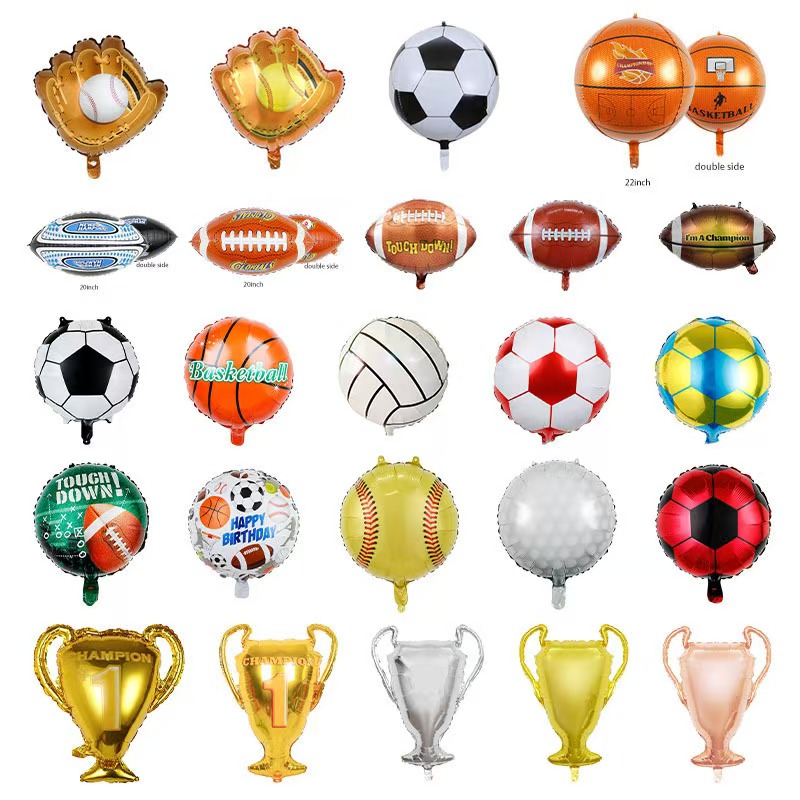 Дизајнот опфаќа моделирање спортска опрема, кошарка, фудбал, тегови, трофеи, силуети на спортски фигури, „WIN“, „GOAL“ и „CHAMPION“ и други стимулативни букви. На еден балон со голема големина (18-36 инчи) не му треба комплицирано усогласување и може да стане визуелен фокус кога ќе се закачи во центарот или влезот на активноста. Посебно е погоден за сцени како што се навивање за настани од големи размери, спортски активности на отворено и спортски игри во кампусот, кои веднаш го разгоруваат ентузијазмот на сцената.