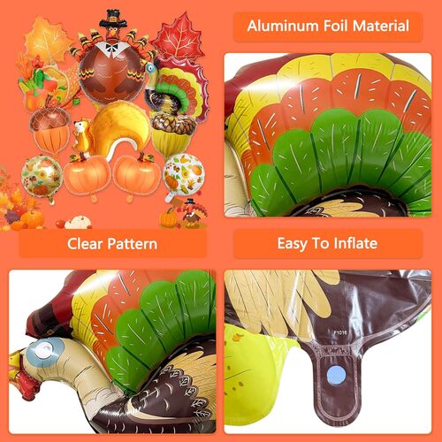 Приспособените балони од фолија за Денот на благодарноста се многу лесни во NiuN®, ги вклучуваат боите на балоните, големини, шемата за печатење и пакетот.
