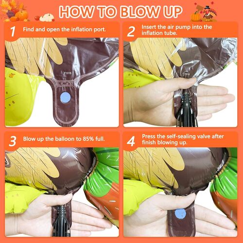Балоните со фолија за Денот на благодарноста ќе бидат многу лесни за надувување и запечатување. Можете да користите рачна пумпа или електрична пумпа за надувување, а потоа запечатете ја со самолепливиот лепак што е на млазницата на секој балон. Откако ќе се запечати, балонот ќе стане силен.