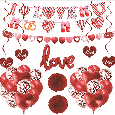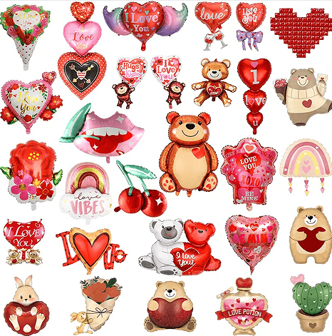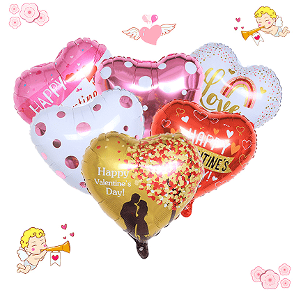 Балоните за Денот на вљубените се дизајнирани околу романса, љубов и ритуал. Основните категории може да се поделат на балони од фолија во облик на срце за Денот на вљубените, фолија балони во стилот на Денот на вљубените, фолија балони со букви за Денот на вљубените и прилагодениСетови за венци со балон за Денот на вљубенитеи така натаму.